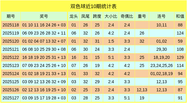 双色球第2025128期数据统计分析表